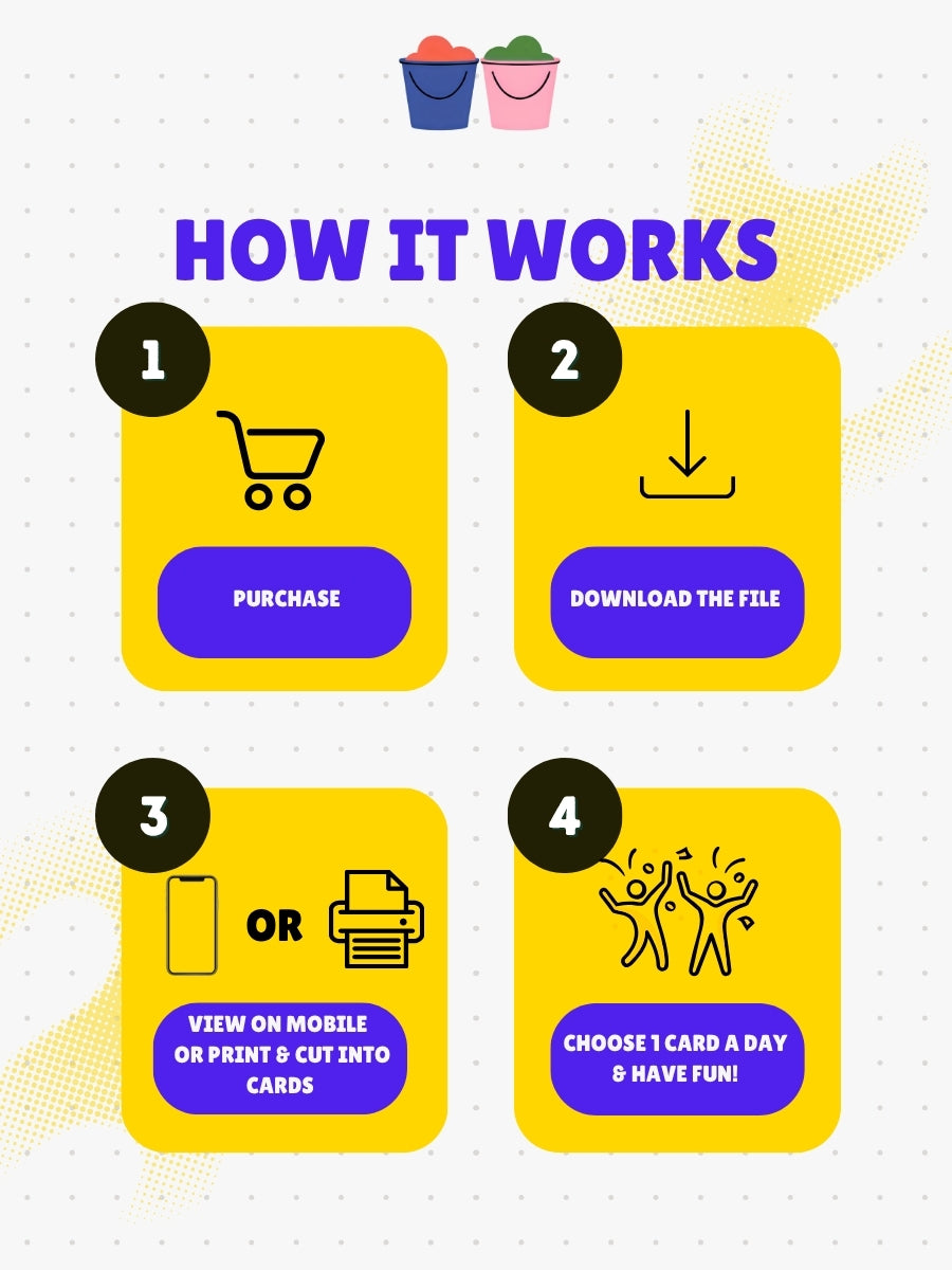 The 7 Day Giggle Pack includes one activity for each day of the week—plus 1 bonus card FREE for extra giggles when you need them most.